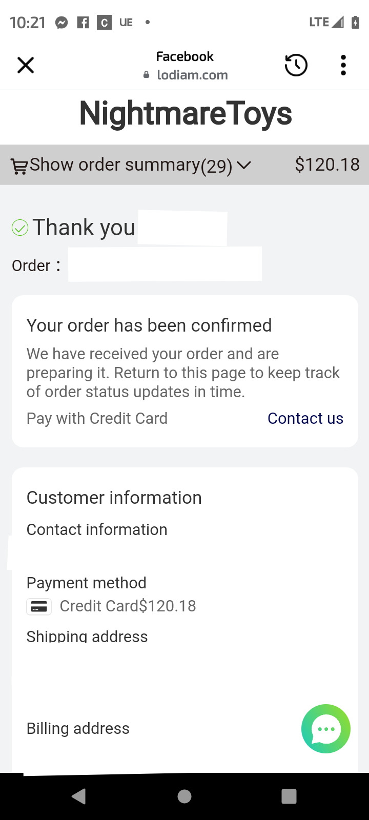 Ich habe Konzert-T-Shirts und Artikel über „Nightmare Toys“ bestellt. Die Webadresse lautet Lodiam, sie haben den Namen/die Website von Nightmare Toys kopiert. Verwenden Sie den Namen für Sie, um zu bestellen. Geben Sie einen anderen Namen ein und senden Sie eine E-Mail mit einer anderen Adresse als der echten Nightmare Toys-Adresse. Meine Artikel sind natürlich nie angekommen und es ist jetzt 2 Monate her. Sie schickten jedoch eine E-Mail mit der Information, dass die Artikel geliefert wurden und an welchem Tag. Damals oder danach kam nichts.