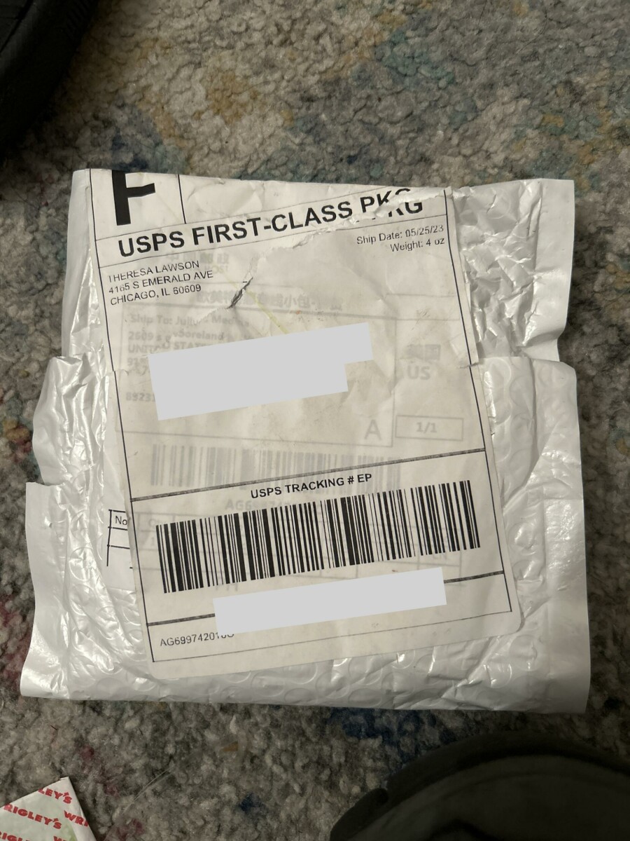 Ich habe ein Paket erhalten, das ich nie bei Theresa Lawson bestellt habe, Chicago, Illinois, USA