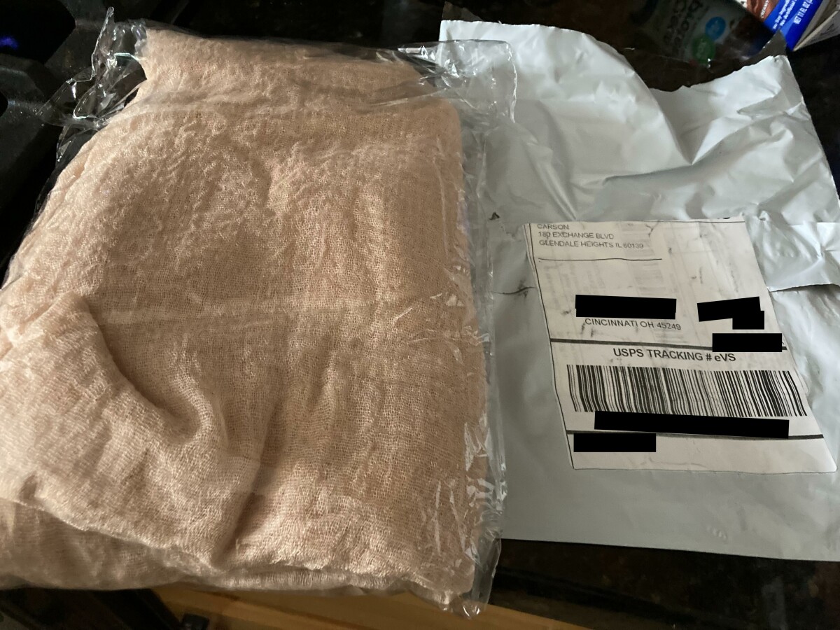 Ich habe einen Schal erhalten, den ich nicht bestellt habe. Absender Carson,180 Exchange Blvd Glendale I'll 60139. Es war ein rosafarbener Schal, dem keine Informationen beigefügt waren. Werde es an den Absender zurückschicken!!