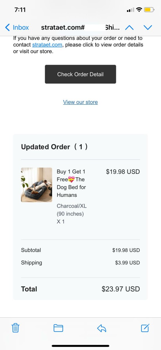 Ich habe am 20. Juli ein Hundebett bestellt und es nie bekommen, aber meine Karte wurde mit 23,87$ belastet