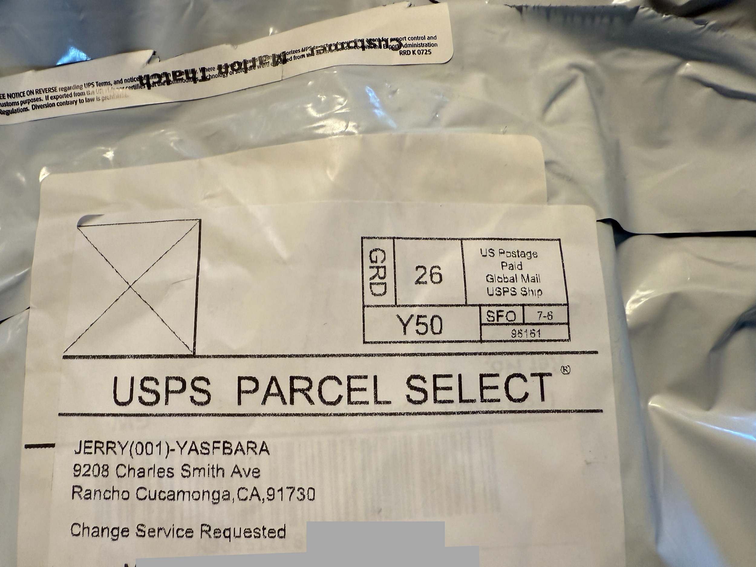 La etiqueta de envío que recibí dice que está en Rancho Cucamonga