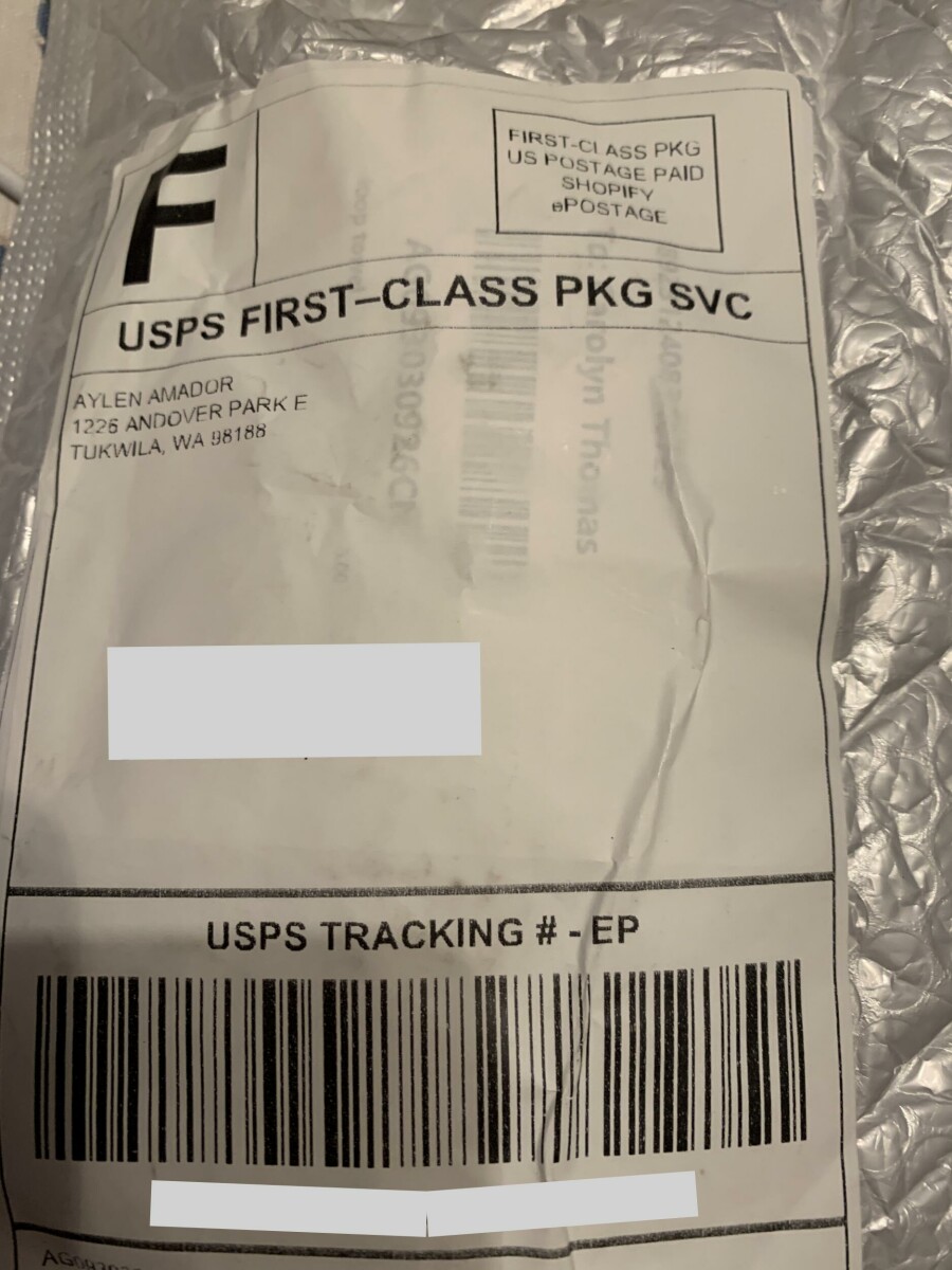 Paquete fraudulento de Aylen Amador, 1226 Andover Park East, Tukwila, WA, USA