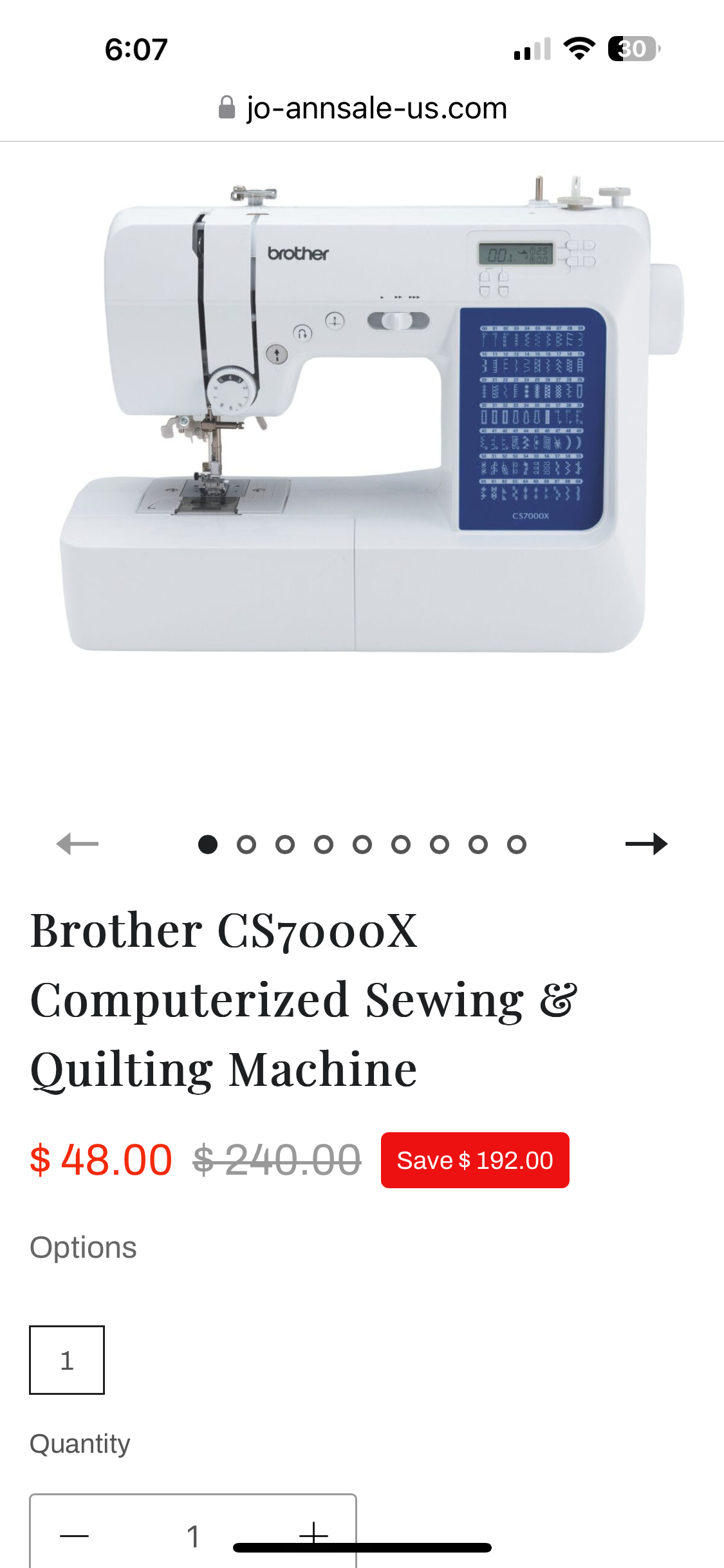 Advertisement for Joann Fabrics going out of business sale 80% off on Brother sewing machine. It was a scam. Thankfully, my credit card company reversed the charge. Beware Joanne Fabrics is going out of business, but there are not holding timed sales. Saw this on Facebook replied to it. Beware!!! Notice the web address.