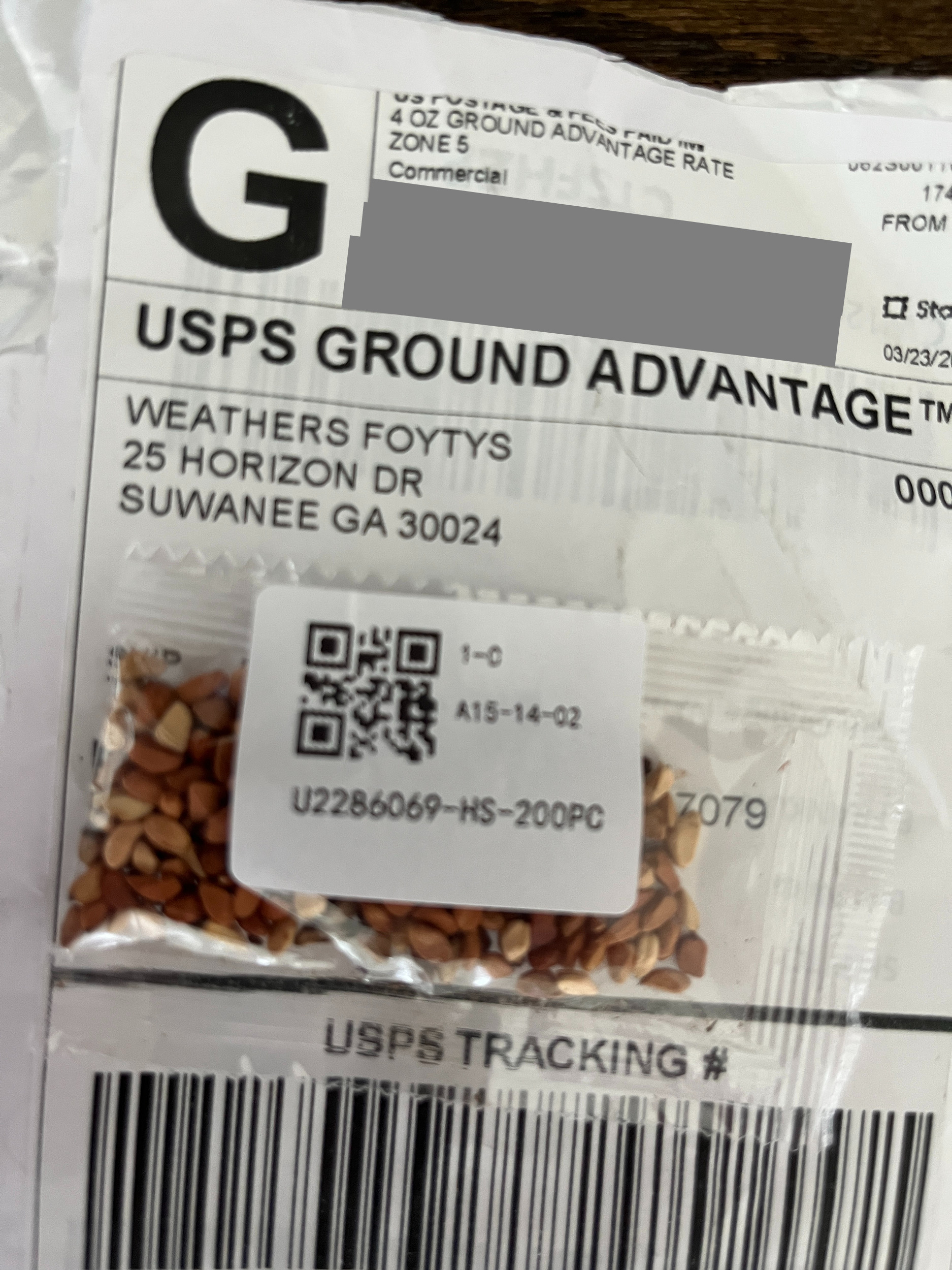 oh my goodness i received a package yesterday why would there be zero communications in it No order or packing slip. not how to use not the name of the seed. mine also came from Weathers Foytys 25 Horizon Drive Suwanee, GA this is concerning and creepy. Check your Paypal account to see if you have any charges i have 2 in the same day not sure what they are but submitted for an investigation. The QR code brings you to crap. Watch your six. Long Island NY. and i did not order grass seed