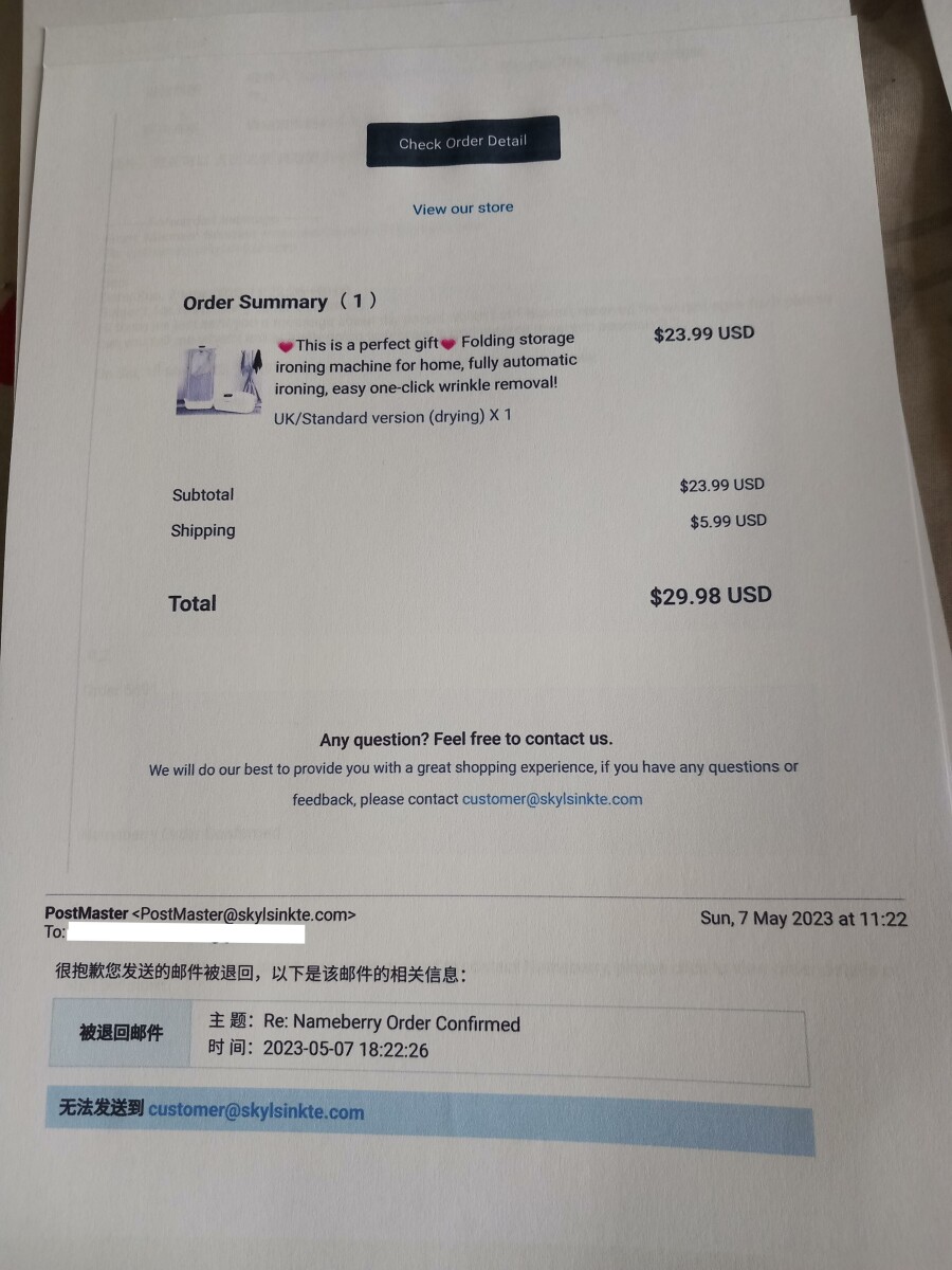 Hi there I ordered a built in stand up clothes dryer in March and still haven't received it I paid £24.78 everytime k email the company it comes back in Chinese writing not in English I would like these scammers to be caught and would like my…