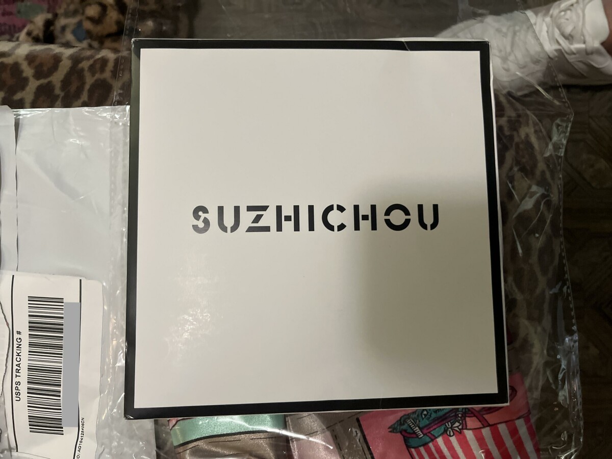 Package from Angela Sharon 2121 Leo Ave Commerce, CA 80040. Package included a box that says SUZHICHOU on it, inside that box is a square scarf like material with horses on it. We did not order.