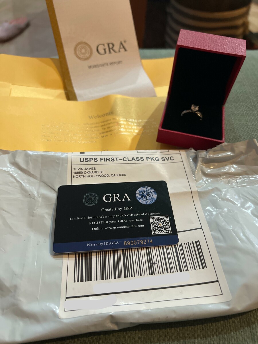 Received unordered ring from Tevin James, 10859 Oxnard Street, North Hollywood, California, USA
