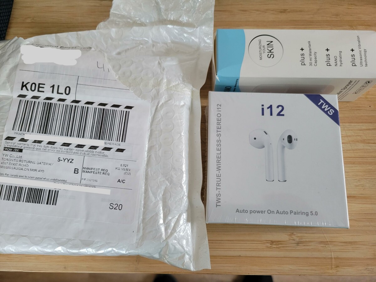 Pacote não encomendado recebido da YW Co Ltd, 4567 Dixie Road, Mississauga, ON, Canada