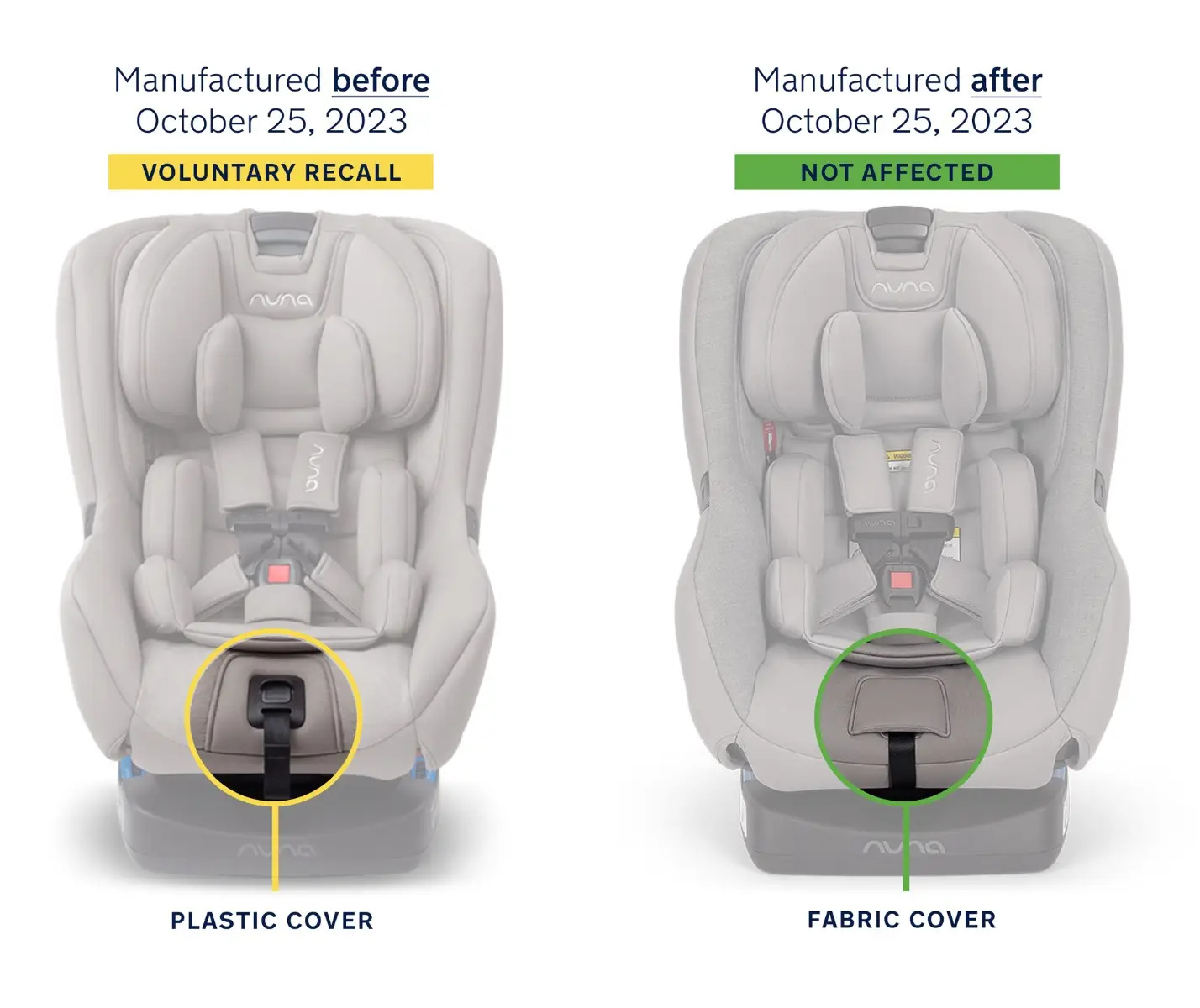 Owners of Nuna RAVAs manufactured between July 16, 2016, and October 25, 2023, will be eligible to receive a new seat pad, cleaning kit, and care instructions to ensure the car seat's harness adjuster is kept clean and working properly.