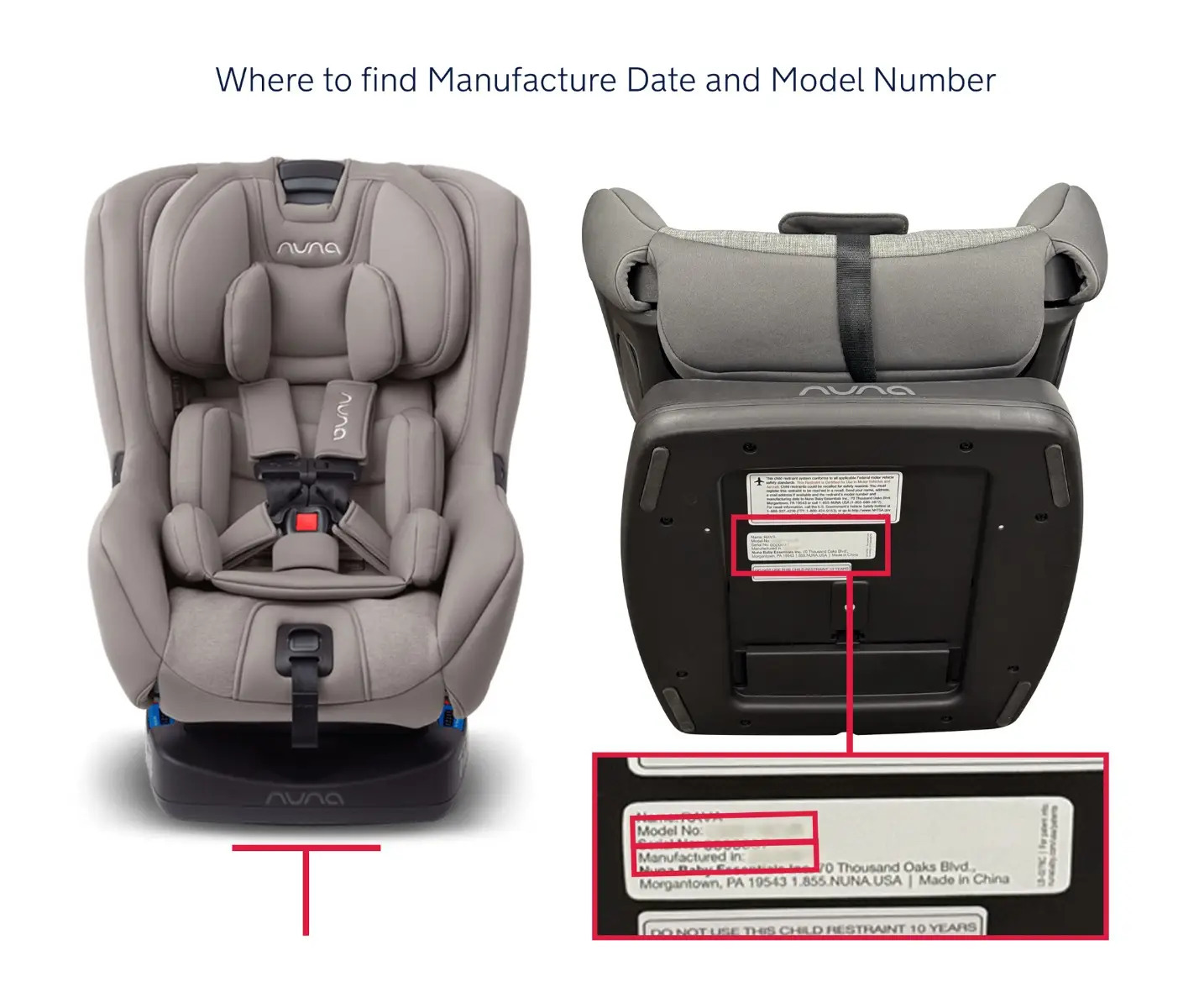 - The model number can be found on the label on the underside of the seat. You can check it in the picture.