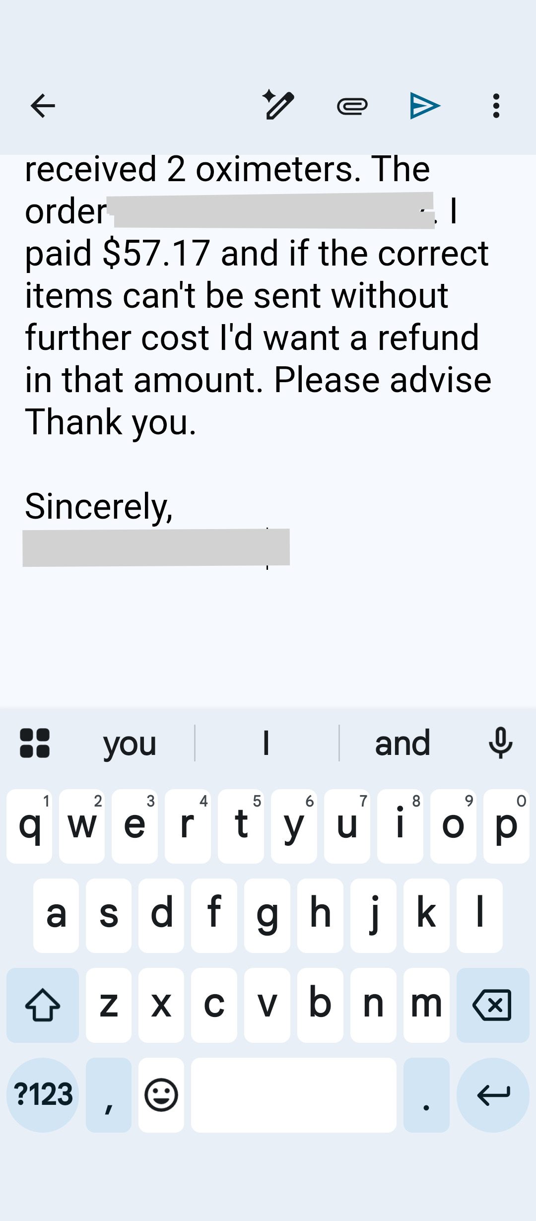 I ordered glucose meters from China but got oximeters instead from Abby Adkins(Atkins). Their return label was over top the Chinese label. So now I don't have the original enclosed paperwork to receive a refund or replace the glucose meters. I paid $57.46 to Replacewide for the two meters