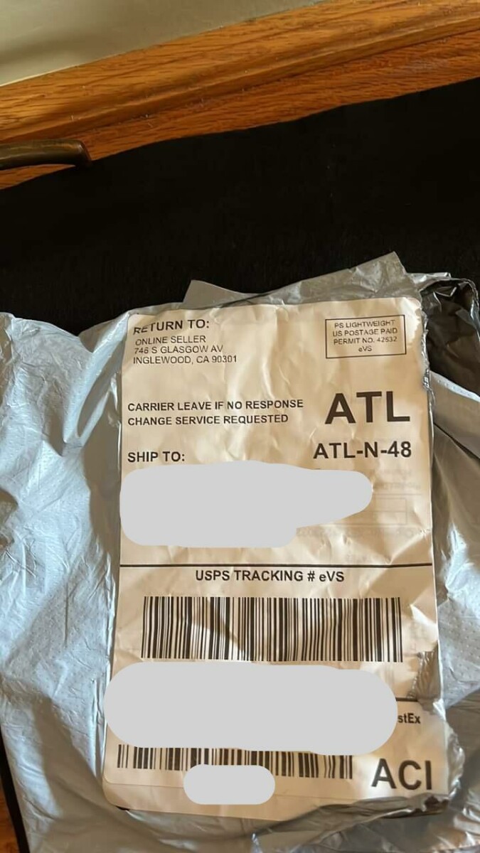 来自在线卖家的诈骗包裹, 746 South Glasgow Avenue, Inglewood, CA, USA