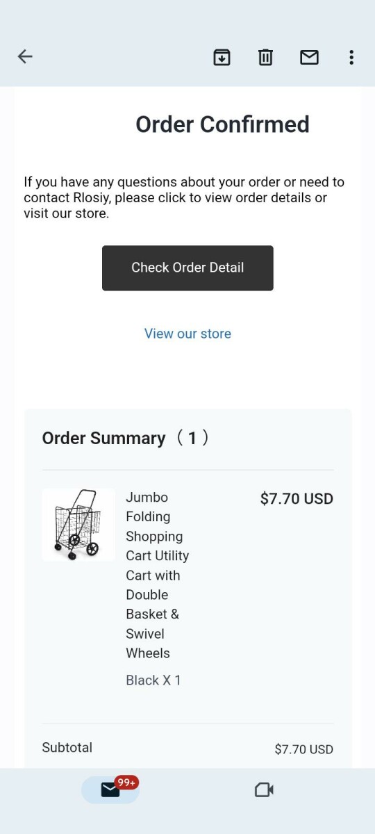 我下单时以为购物车已经是床上洗澡了,我收到了一封确认订单的电子邮件,但我直到今天才收到购物车或退款到我的卡上