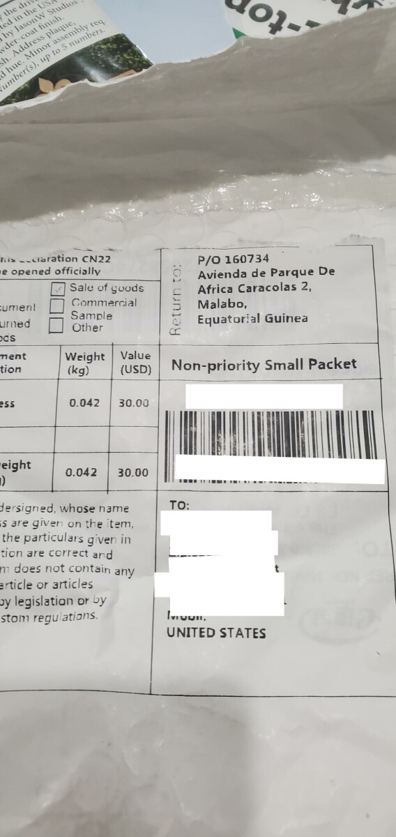 我还收到了来自同一个地址的完全相同的戒指,但没有订购。, 370 Elizabeth Ave, Newark, NJ 07112, USA